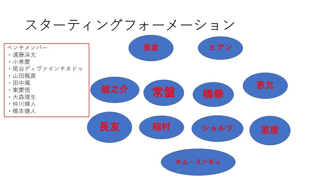 凶というか柏のハイプレスにまんまとやられたので、龍之介のスタメン起用が悪かったかと言われればそういうわけではないと思う。これがいつもの遠藤スタートなら行けたかと言われれば選手起用で埋められる差どころではないくらいハイプレスにやられてた感。